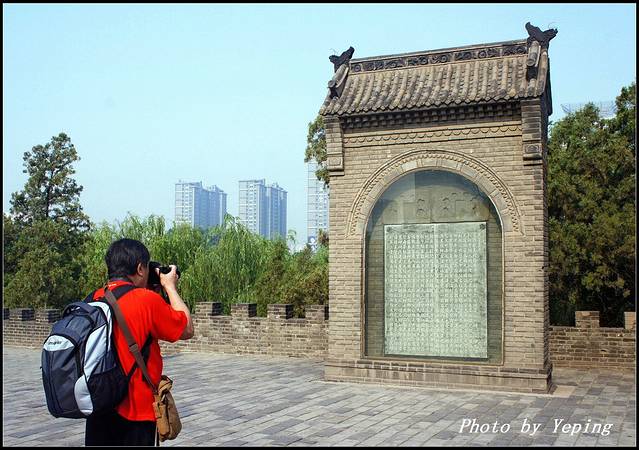 迎门而立的碑刻,正面刻有清代乾隆皇帝《登丛台》的一首律诗,