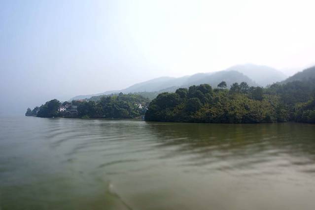 两岸的山影层层叠叠~不过我觉得在江浙算是很多见的景色了…