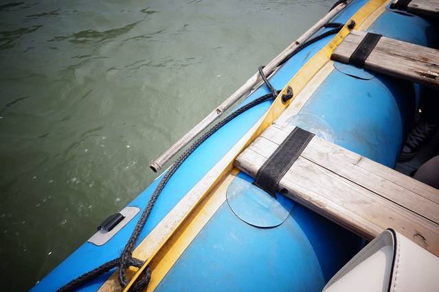 皮划艇,用发动机的那种。行驶起来非常平稳,只有打开发动机,船头翘起加速的时候还有一点点小刺激。考虑到麻麻胆子小,这种漂流还挺不错的~不过下回我一定要找个机会来次刺激的!据说天目溪的就不错~