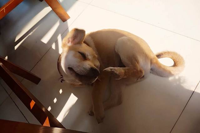 这顿饭唯一的亮点就是餐馆里养的一只小草狗了。正午正是晒太阳的好时机,各种慵懒,呆萌~