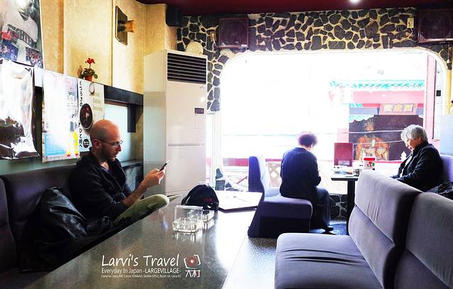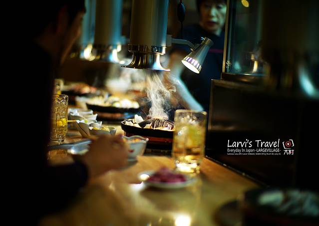 上了二楼,隔壁是两位日本朋友,目测是下班后相聚吃烤肉,呵呵,围着围裙。
