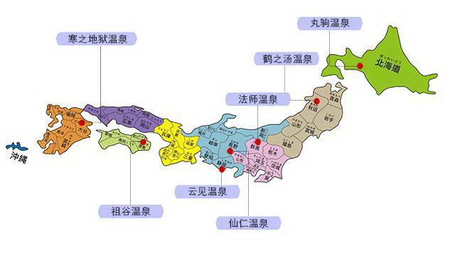 日本主要旅行目的地区位示意图