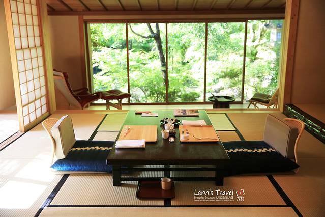 【伊豆修善寺】和式的榻榻米,直接大落地窗对着山林,
