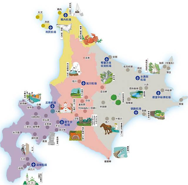 北海道的观光示意图,可以看看大致的景点特色
