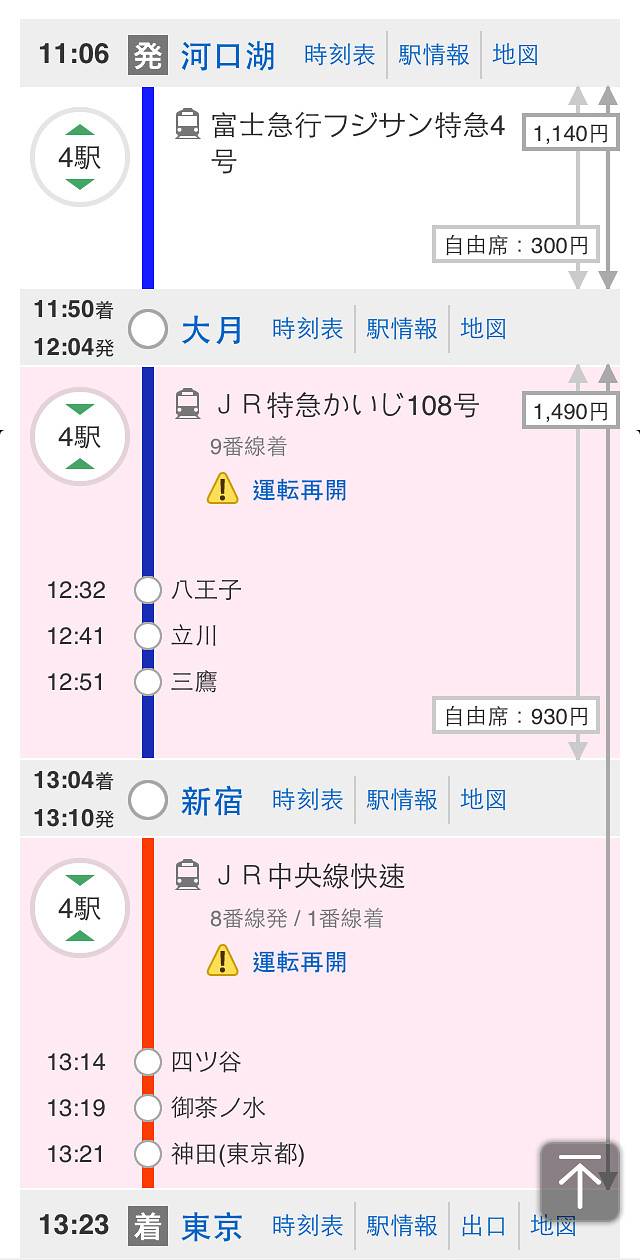 然后转换JR回到东京的新宿,这个转换也很方便。推荐这个走法比较舒适一些。