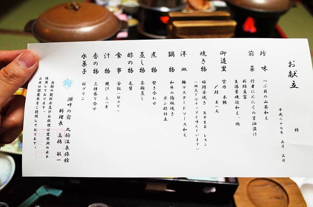 到了晚餐的时候,酒店的服务员开始来提供晚餐,晚餐也还算丰盛的,但是我们前一晚刚吃了ASABA,所以还是能体会出这个差距,从细节到服务,不过也还算不错了。 真的应验了那句话,体验过ASABA,其他的日式旅馆都将成为浮云。