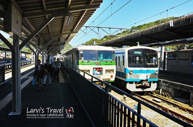 到河口湖车站里,可以乘坐富士急行的列车到达大月,