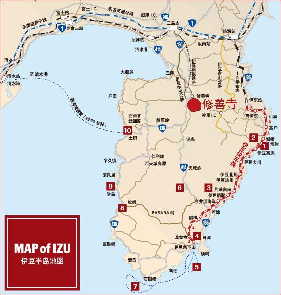 具体路径是先乘坐私营的列车从修善寺到三岛,然后在三岛车站乘坐大巴就可以了。