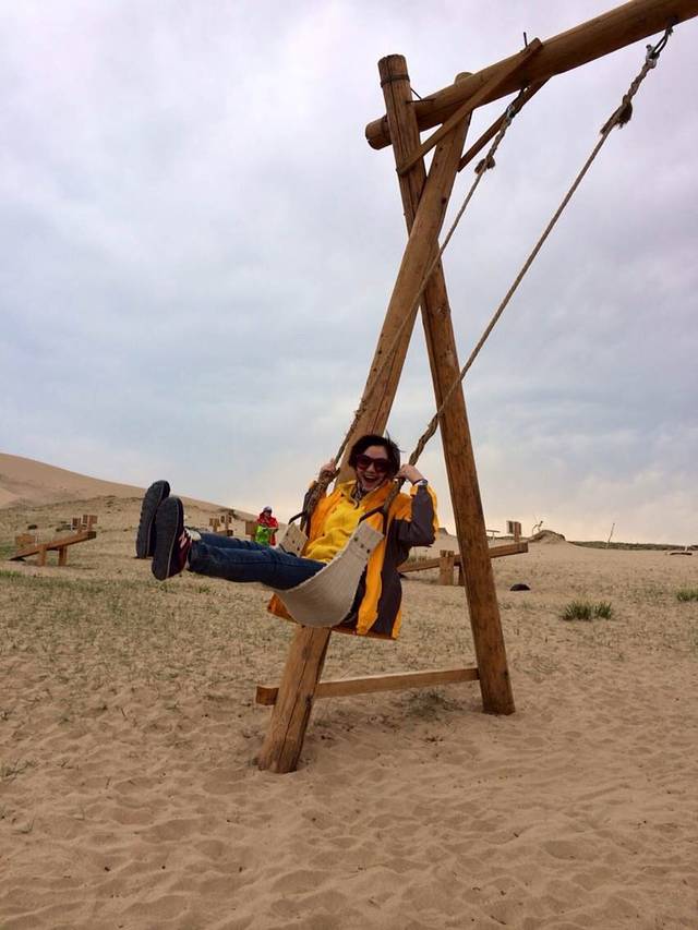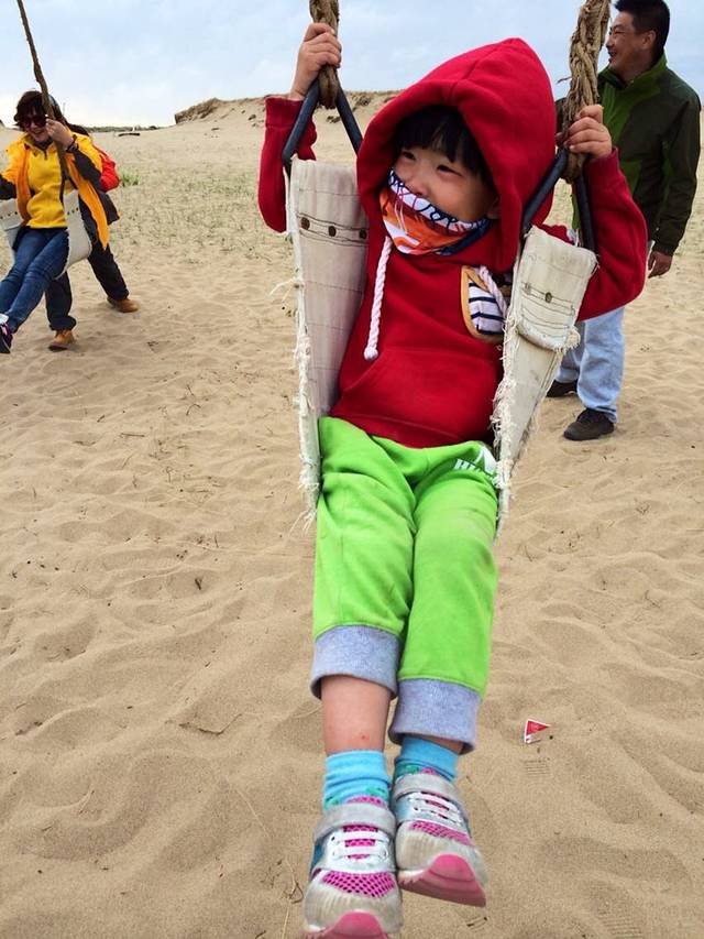 抵达沙岛,娃一路小跑,远远看到立在沙地里的秋千,尖叫着过去。