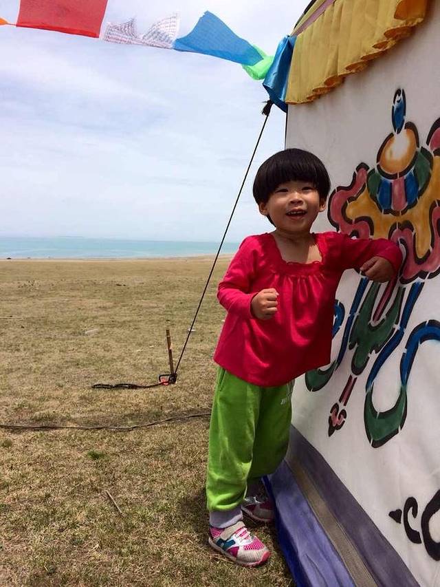 聪聪爸爸找了个临湖的毡房解决,可把孩子们乐坏了,麻麻买的祈福小纸片给娃撒,娃舍不得。