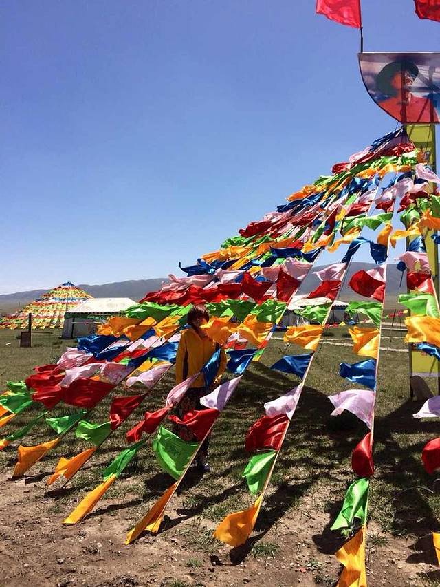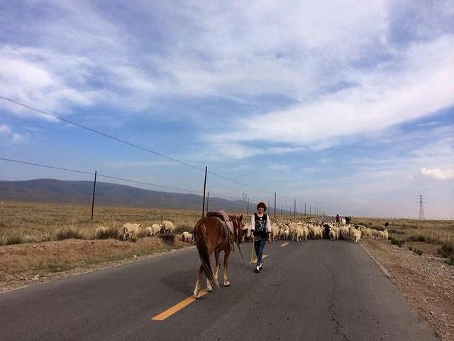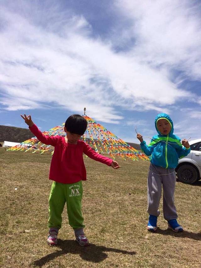 艳丽多彩的经幡迎风招展,娃见到牦牛尖叫,见到羊群大叫停车,看到马不肯走了,停车骑马。