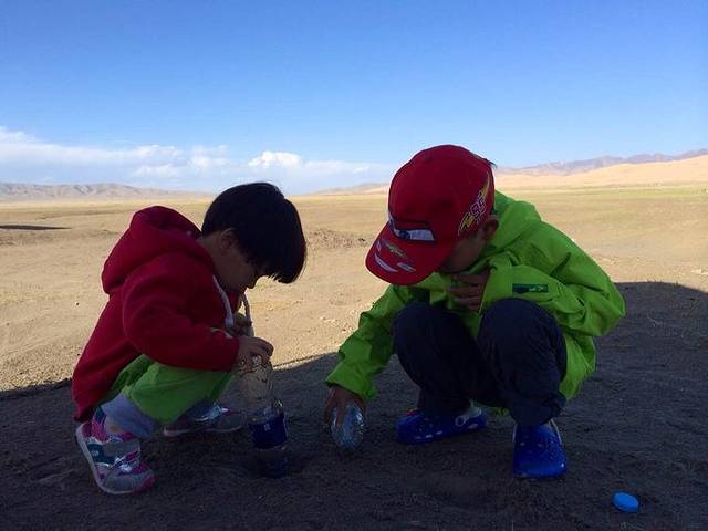 停车后,即刻找羊咩咩撒给它们。娃们在毡房前跳舞、追逐、在炕上打滚、嬉戏。