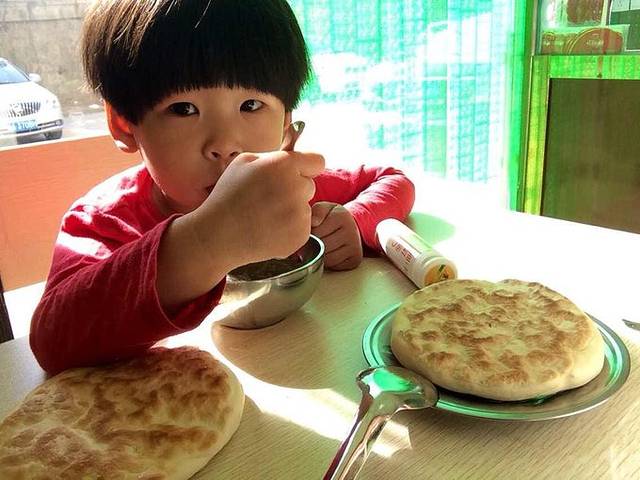 好在都被早餐一碗香浓的牦牛壮骨汤抚平,蓬松丝滑的大饼经浓汤泡制,汤饼热恋交融,你中有我我中有你,入口即化。