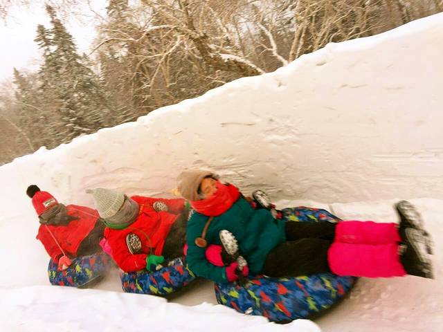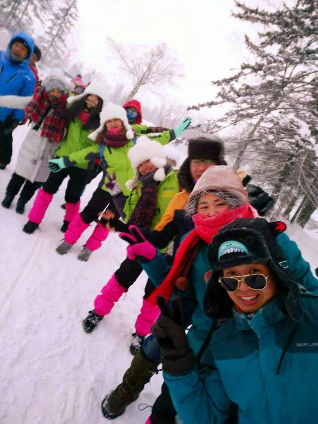 3. 大家看照片会发现我有时穿羽绒服有时穿冲锋衣,其实我当时没带冲锋衣、冲锋裤,是到了哈尔滨之后,雪城户外提供的,冲锋衣冲锋裤都是加了一层绒的,很厚实,另外他们还可以免费借帽子、厚魔术头巾(多种功能,可以当头巾、围脖和口罩用)和雪套。还好我本身带的衣服不多,有些小伙伴带了好几套衣服来旅行,再加上雪城户外提供的衣物,行李箱基本装不下,哈哈。