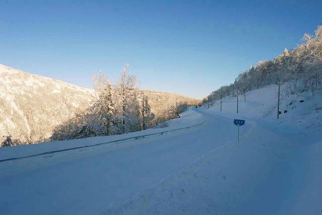 在去往冰雪幻境十里画廊的途中,经过给力雪——亚雪公路免费景观点,这名字起得真给力!从给力雪这边可以看到公路另一边的秃顶子山哦!