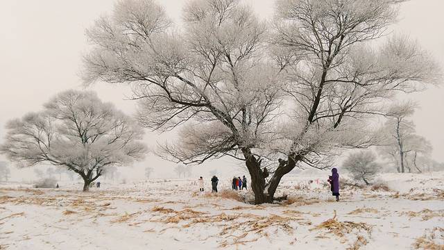 雾松岛因雾凇多且美丽而得名。 雾凇岛周边的景点超级多,可以不重样的玩上好几天!但是去往各个景点的交通并不是很方便,如果想省去交通上的烦恼,可以考虑找一个当地向导或者直接报名户外游玩路线,不但无需自己做攻略,还根据自己时间选择线路,在专业领队的带领下玩遍所有经典景点,既安全又省心。在百度旅游就可以预订哦! 这里的地势较吉林市区低,又有江水环抱。冷热空气在这里相交,冬季里几乎天天有树挂,有时一连几天也不掉落。 岛上的曾通屯是欣赏雾淞最好的去处,曾有“赏雾凇,到曾通”之说。这里树形奇特,沿江的垂柳挂满了洁白晶莹的霜花,江风吹拂银丝闪烁,景色既野又美。 雾凇只有冬季才出现。这是因为雾凇的形成有它自己独特的环境和条件。 雾凇分为粒状和晶状两种。粒状雾凇结构紧密,形成一粒粒很小的冰块,而晶状雾凇结构比较松散呈较大的片状。吉林的雾凇就属于晶状。