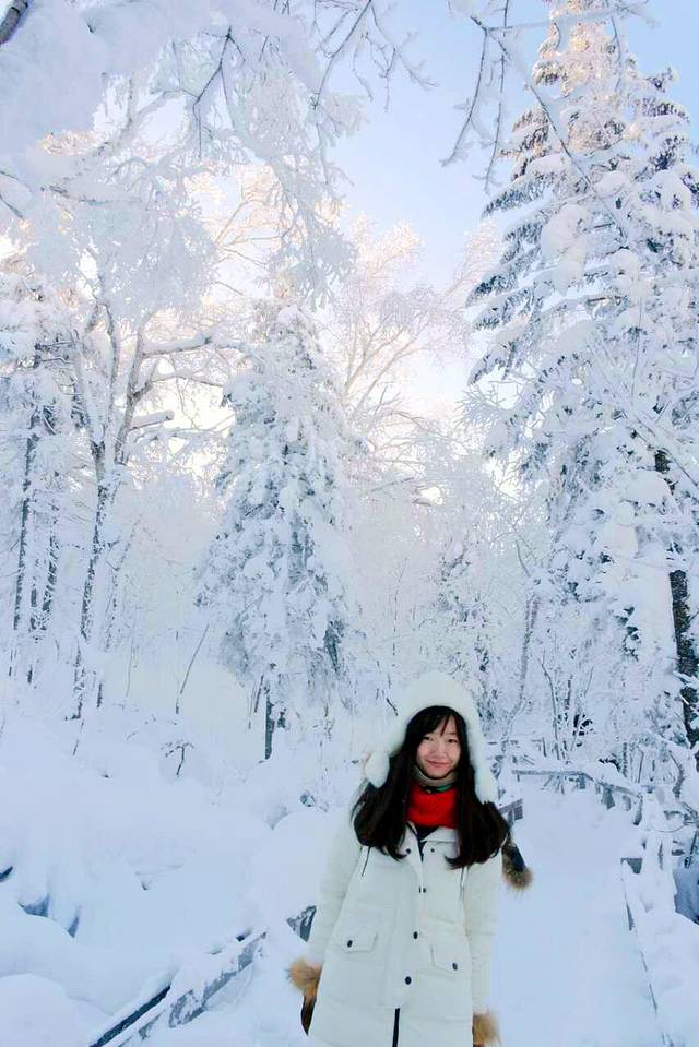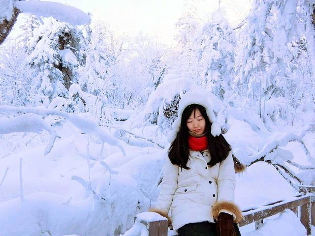 4. 羽绒服或冲锋衣,总之,是穿在最外面的衣服,建议颜色尽量鲜艳,与雪的白色形成强烈对比,这样拍照才好看。我真心后悔穿的是白色羽绒,拍起照来完全淹没在茫茫雪海中。