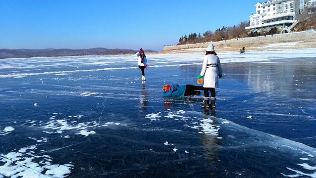 镜泊湖,湖如其名,平如镜面,冬天湖面结冰,厚度大于1米,在上面玩耍、开车完全没问题。