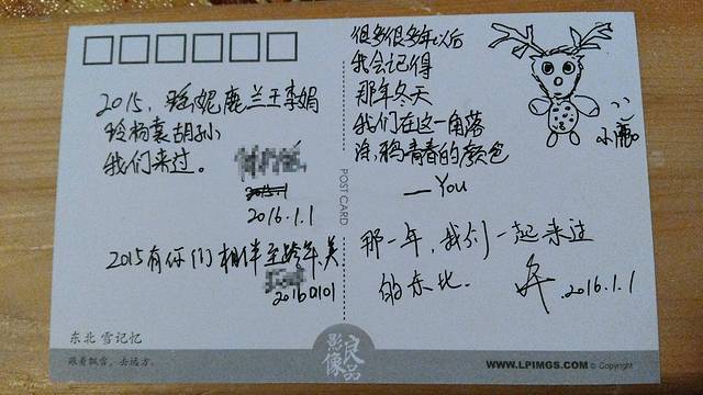 这些借的衣物归还后,雪城户外会清洗的,离开的那天,我们四个女生偷偷写了明信片,藏在冲锋衣里面还给他们,当时还担心会不会到下一批客人才会发现,结果离开后不久就收到他们发现后拍下的明信片照片,嘻嘻