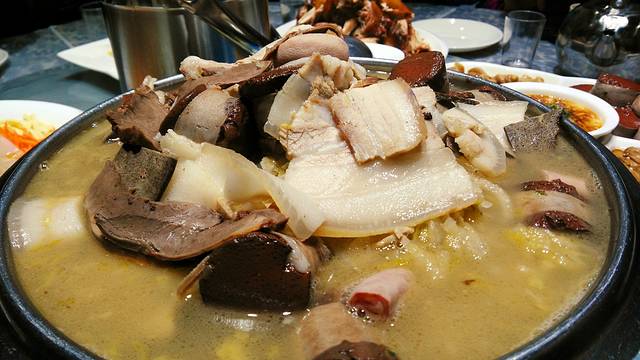 晚上,我们终于吃到了传说中的杀猪菜了,据说在当地很有名气,很多明星特地前来光顾!