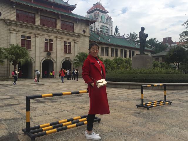 进厦大西门是鸟书,既有鸟的形状,也有书的样子,正对着西门,而西门其实并不是正西的门,正如南门也不是南门一样,传说中鸟书是建校时,风水先生提议镇住阳气盛气的建筑物。太高端,不太懂了,所以一进门闽南文化让人无准备的自嗨了一把,拍照的学生们家长们太多了,往前走吧……嗯……还没有拍照的状态,忽略我,直接看身后的嘉庚同志雕像和洋身子红顶子的教学楼吧。