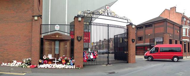 背负着替KOP们去希尔斯堡惨案纪念杯前献束花的愿望,我们从曼彻斯特来到了世仇利物浦,就是Rio总在赢球时候唱high了的那首“Are You Watching Mercy Side”摩西河畔的真正主场,安菲尔德球场(Anfield)。