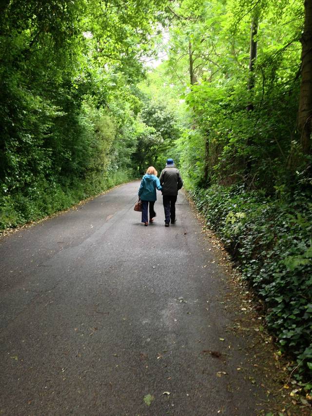 一对儿老夫妇走在我们前面,陪着两边的树特别有穿越感