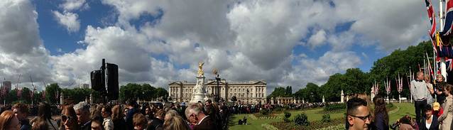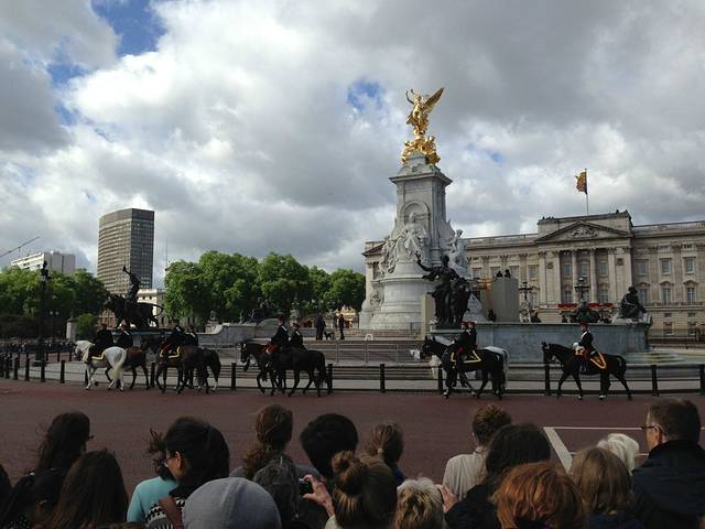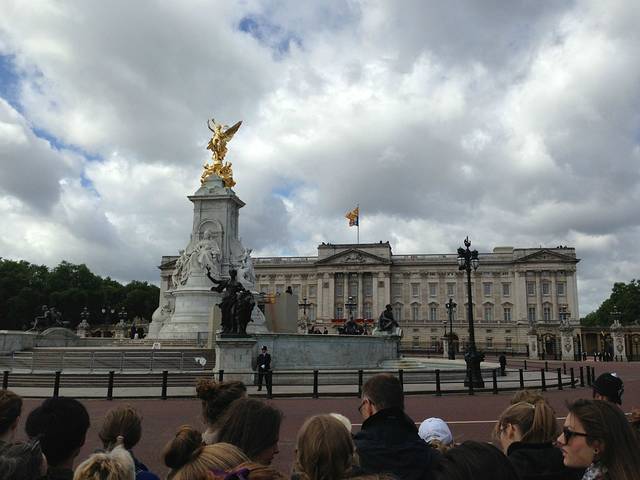来白金汉宫就在地铁Green Park站下就行,随着人群走到The Mall就是白金汉宫前面的空场。找个好位置,等待就行啦!要想站在前面要早来,但是一般绅士的英国人,都会让小孩儿和女士往前站站,咱们普遍显小会被当成小孩,入境的时候入境官都不相信我们是来度蜜月的,说我们看着好小。但是如果你有点道德或者礼貌的话,还是把好位置让出来吧,给那些老人和小孩和那些提前那么早来的人。