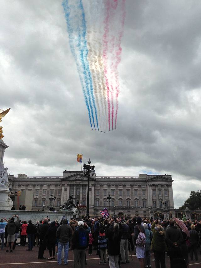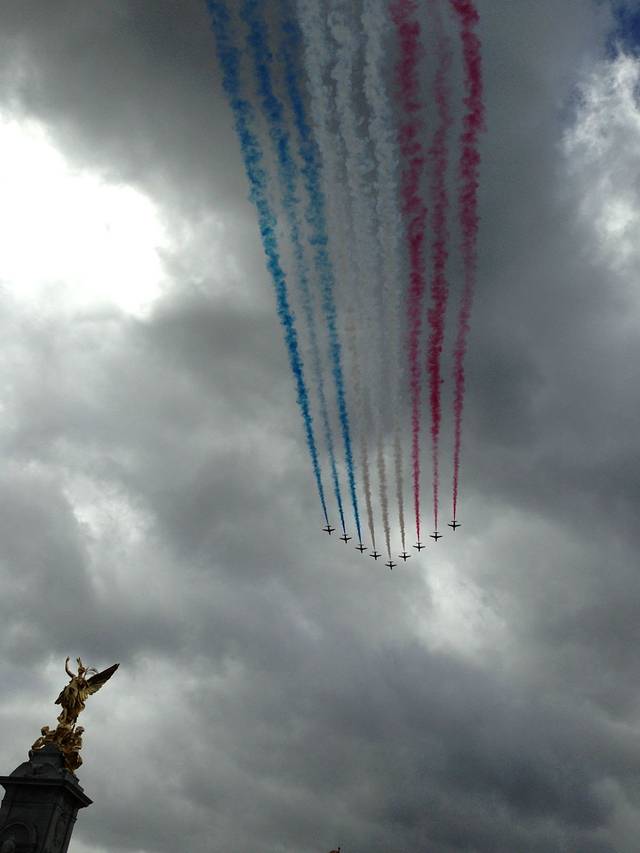一改之前的阴雨绵绵,今天天气太给力了,一会儿还有皇家空军的飞行表演,这蓝天白云大灰机的,帅气有木有!