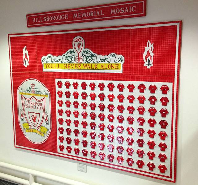 希尔斯堡惨案的纪念碑-You Will Never Walk Alone,当这首歌剧式的战歌在参观KOP看台的时候响起时,连森果儿这个曼联死忠都快哭了。