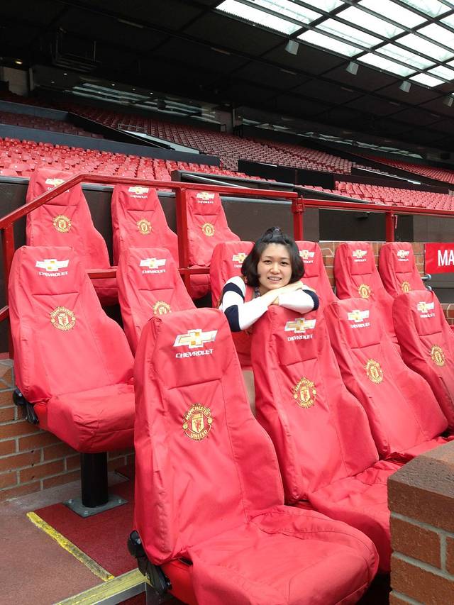 老特拉福德进场参观,Museum&tour是每人17磅。工作了14年的大爷领着我们一队人,把每一处有故事有纪念的地方,比如慕尼黑空难,巴斯比爵士铜像,阿里克森弗格森爵士看台,贵宾室,新闻发布室,更衣室,球员通道,教练席一边讲解一边参观。由于每次讲解的工作人员不同场地情况不同,会有不同的游览路线,这次我们没有从球员通道出来,是从博尔特这种被请来的贵宾通道出来到达球场内部的。大爷说他在这里工作了10多年了,有什么疑问都可以问他,于是老公就问,鲁尼会走么?大爷说,他哪也别想去……