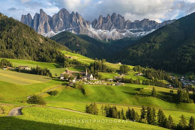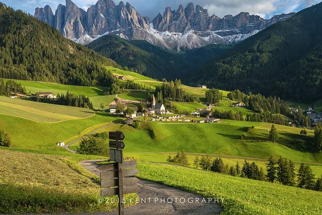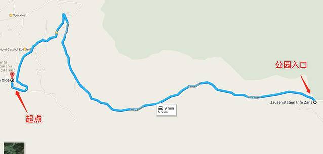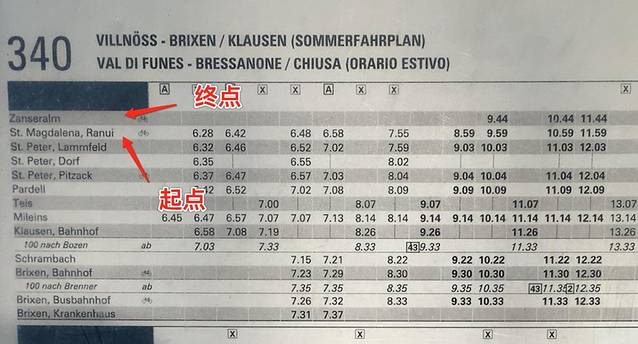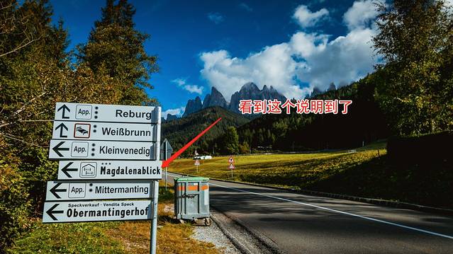 第三段:从Bressanone 到 Santa Magdalena。这里的Santa Magdalena就是funes山谷的小镇名了,这个小镇就是能看到明信片景点最近的小镇,推荐在这里下榻。