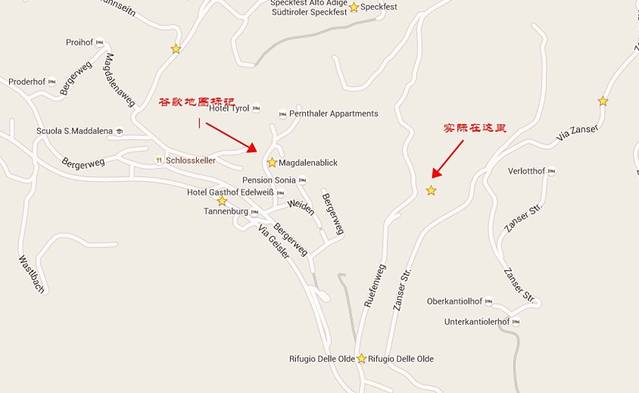 看到这里估计很多同学已经迫不及待要去定了,那我泼点冷水:1.酒店的谷歌地图定位是错的,我们被导航到错误的地点最后费了大力气才被房东捡到送到酒店。各位搜索谷歌地图的时候定位的是A,but实际上是在B。什么,不是很远?相信我当你拖着行李箱在山路上走的时候,你就会改变你的想法,所以千万不要用谷歌导航到酒店。