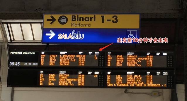 然后从米兰中央火车站到维罗纳,购买的方法跟之前一样,记得算好换站点时间。这里需要注意的是,车是在哪个站台上,需要在发车前10分钟才会在电子显示屏显示出来,所以到站点之后记得关注电子屏。