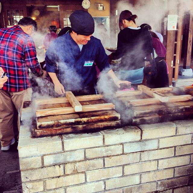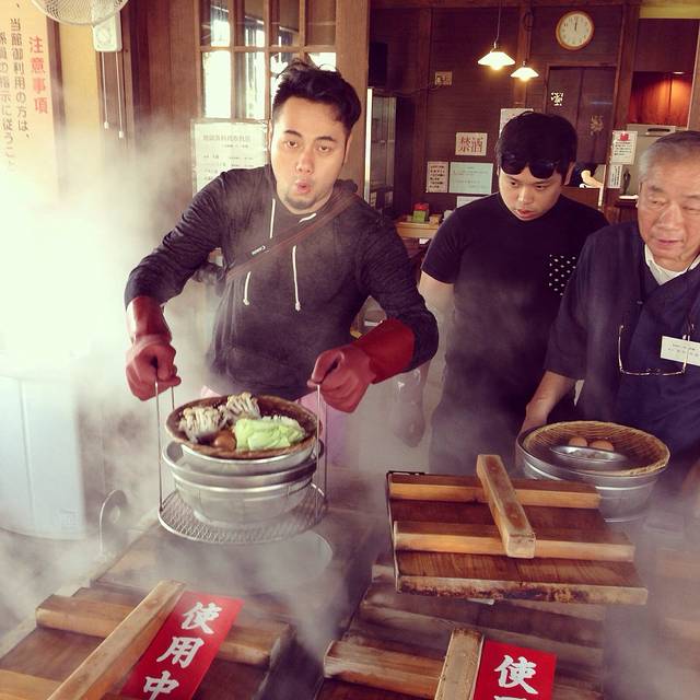 “地狱蒸”-用别府天然温泉把食物蒸熟,无油无盐,还原食物本来的味道,由客人亲自下笼,洗碗。健康又有趣。
