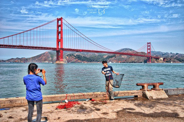 这是近代桥梁工程的一项奇迹。大桥雄峙于美国加利福尼亚州长1900多米的金门海峡之上,历时4年,利用10万多吨钢材,耗资达3550万美元建成,由桥梁工程师约瑟夫·施特劳斯(Joseph .Struss, 1870—1938年)设计,可以在海边看到三番的全貌和恶魔岛,恶魔岛是以前关押重刑犯的地方,现在每年加州的铁人三项比赛都有从恶魔岛游到这边海岸的比赛。