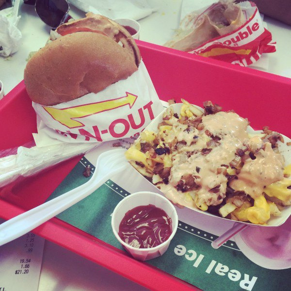 哈哈介绍一下加州特产 in-and-out 我吃到现在最好吃的汉堡没有之一!!!!以前只在网山见过他,真的是名不虚传。真的好吃!我吃了两个两个!还有旁边那个是他的secret menu cheese和洋葱的薯条。。。🍟嘻嘻嘻嘻