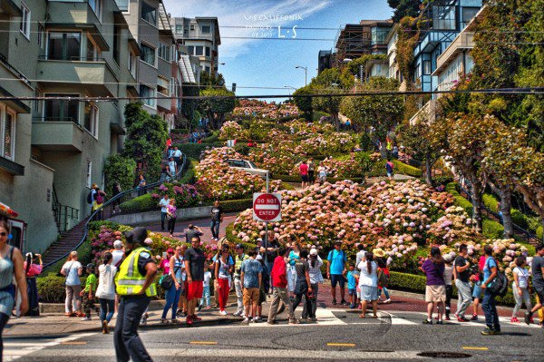 金门大桥完了以后就是九曲花街(Lambard Street)和渔人码头(Fisherman's Wharf 也是码头的39号码头市场Pier39 Market)。总结就是今天参观所有世界灾难片开始的地方。