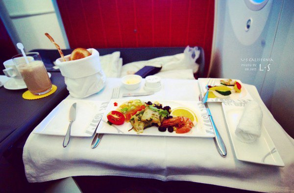 上飞机就开始吃,吃完以后躺下就睡。睡了大概有4个小时起来在机舱内溜达了一圈以后坐下看了一集世界青年说(哎呀我的霸道总裁詹姆斯简直太帅了,我的小公主简直可爱到爆)