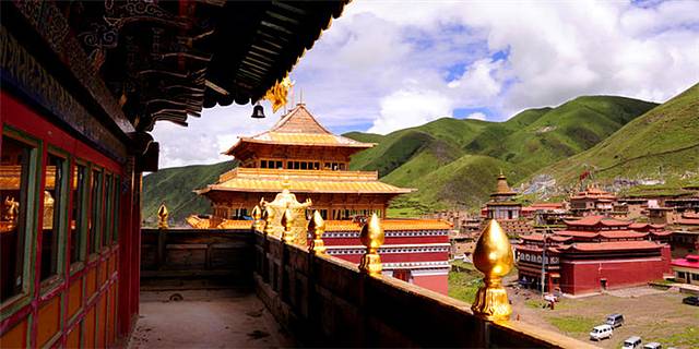 泽布基寺创建于1456年,“泽布”的意思是初十,是说每年的四月初十都会在寺内组织跳神活动。泽布基的镇寺之宝是一尊一尺半高的度母金像,佛殿上层供奉着的25尊具有印度萨尔拉特风格的金像也非常珍贵。正殿香案上还供有2块印有足迹和“六字真言”石板,印有足迹的石板,据说是阿盖尼玛俄热孩提时显示神通时所踩足迹;而“六字真言”石板是由阿盖尼玛俄热显示神通时用手指所刻。佛教信徒对这两件圣物,都倍加珍视,一睹为荣。