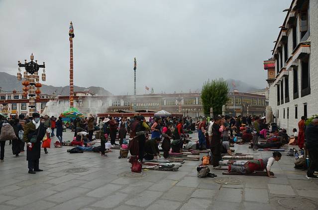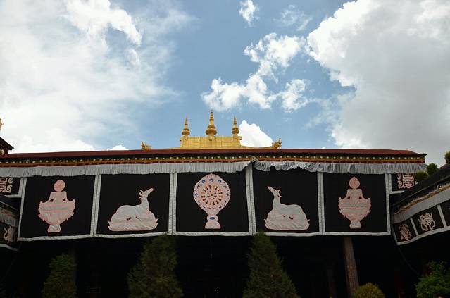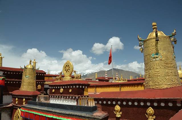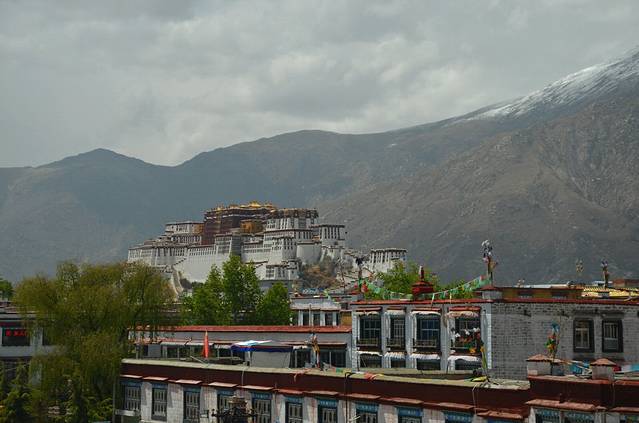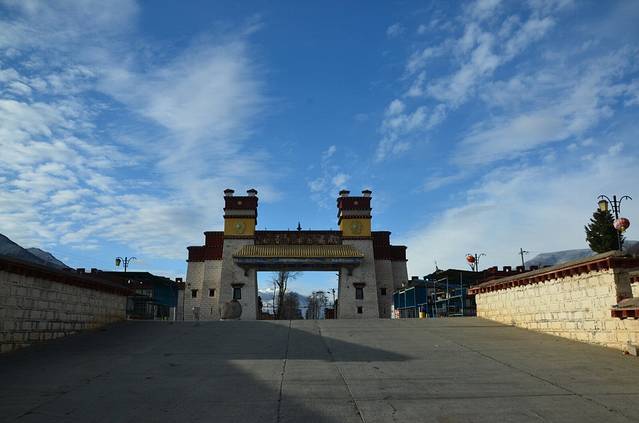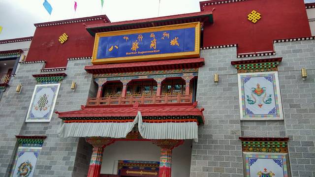 来到了尼洋阁,一个独特的博物馆,因为不允许拍照,只能来个外景了,但也很美,选址很好,四周都是雪山,这时的风很大,很凉,会不会有购物项目。。。。