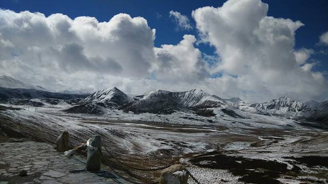 到达米拉山口,真的是太美了,蓝天,白玉,雪山,阳光,无法用言语来形容,此时已经是海拔5013米,看到这样的美景已经让你忘了身体上的不适,缺氧,呼吸困难,冷。。当你看到这些的时候,瞬间又都忘了,只顾着欣赏。。。。。