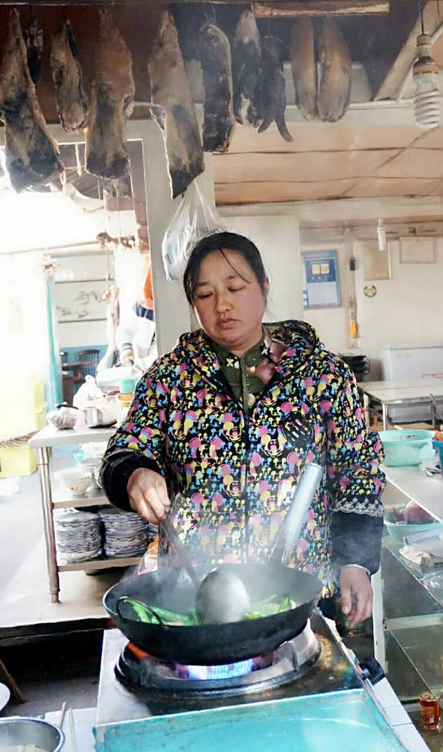 因为是清真馆,以牛肉为主,英姐说,每周杀一头牛,大灶上,是时刻都在热腾的牛骨汤,我们吃的红烧牛肉,香浓四溢,却实而不贵。英姐是从剑川县城过来的回族人,来往人们都尊她为英姐,了解后,才知她年龄并不大,只因多年前,沙溪尚未开发,她独自一人,来这打拼,开起了沙溪最早的饭店,又因人好菜美,而渐渐做出了口啤,如今的她,父母与小孩都过来帮忙与读书,一家人终于在一起,虽是日复一日,年复一年的忙碌,她却说是最安心的踏实。
