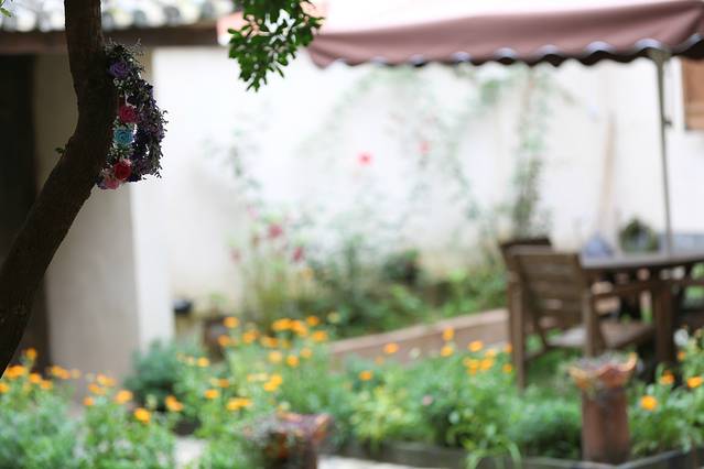 细细的五月念是点滴用心之作,从一个半小时一间的客房卫生做出的几近一尘不染、收购的旧家具和手工装饰、小件、绿植;五星酒店的洗护用品;泉林本色的可降解纸巾;温暖的细节:花茶、香包、插花、老罐、布偶、客人的写画和旅行照片,处处是艺术和生活的完美结合,低调、涵养雅致、温馨当家,就如女主人,淡如邹菊,又体贴周到,没有过多絮叨,又暖暖如久别的旧友。