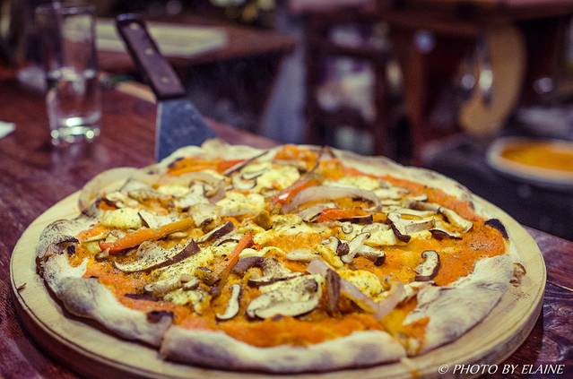 蘑菇披萨,自制奶酪。面饼是真的不错,可惜自制奶酪味道不够。