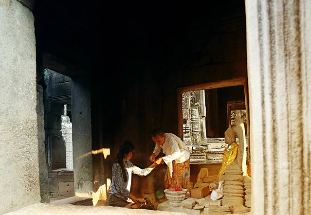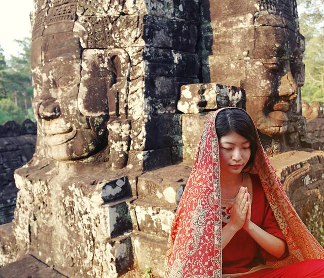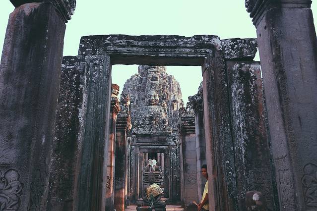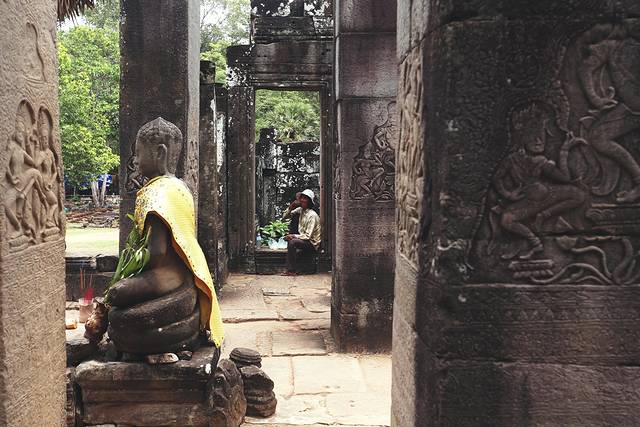 巴戎寺,高棉的微笑。穿行在众多佛塔间,身处任何一个角落,都浮雕会发现有带笑的眼睛注视着游客的一举一动。傍晚等游客离去,感觉整个人都平静下来