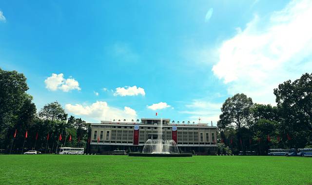 出了市场就迷茫了,一个卖椰子的很热情的帮我们指路,还带着我们走,搞了半天其实是要我们买椰子啦...抱歉虽然很便宜但是我们刚刚喝过了...本来想去越南博物馆的然后沿着那个人指的路根本没有走到博物馆好么,走着走着走到统一宫,于是想先去统一宫也可以啦,但是统一宫要1点半才开,于是找了家咖啡店吹起来空调。