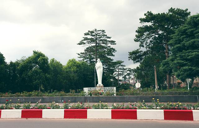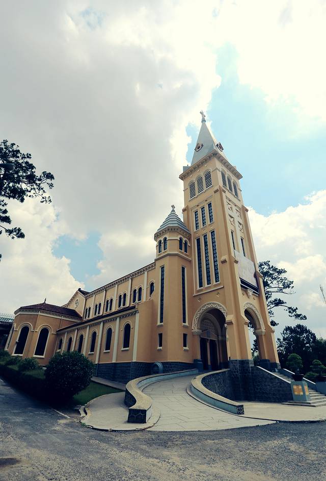 然后天就开始不对了,乌云飘了起来,趁还没下雨走到大叻教堂,大概时间不对没有开门,比起胡志明的红教堂大叻教堂蛮迷你的。