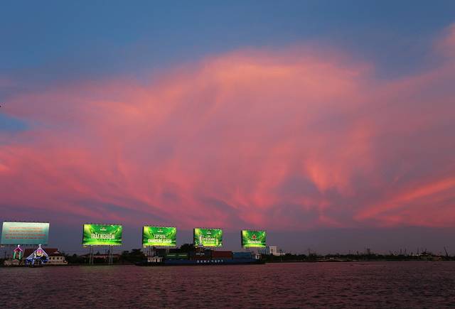 本来想去博物馆的,不过时间关系,5点半就关门了,于是把博物馆放到了明天,稍微吃了点蛋糕,我们走到西贡河边,走了很久河是看到了,但是隔了堵墙,沿着墙又走了一会,终于到了真的河边...晚霞不错哟~,岸边的建筑有点像外滩呢。晚上找了家餐厅吃了顿好的哟