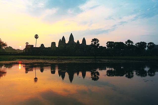 "吴哥"即高棉语"城市"之意。吴哥王朝鼎盛时期是公元九世纪到十五世纪,所辖领域在东南亚最为广阔。仅是吴哥王城,占地就达400多平方公里。13世纪以后,暹罗人连年侵犯吴哥,吴哥王朝衰败,部分王室人员和吴哥民众迁至金边,部分吴哥民众迁至暹罗。吴哥逐步被丛林荒草淹没。